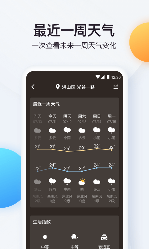 - 可自动定位您的当前位置,然后提供相应的温度信息。