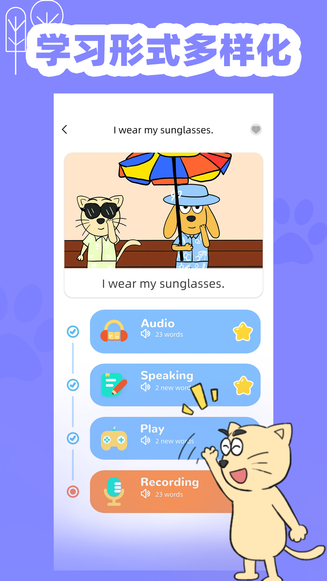 适趣英语是一款绘本阅读类软件,其采用先测字再学习的模式。软件会依据词汇量的测试结果,精确地向孩子推送适宜阅读的绘本,确保生词量始终维持在0 - 3个之间,使孩子在阅读时能够一直保持兴趣,轻松地进行英语学习。