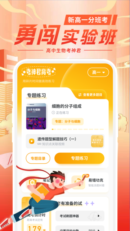 不仅如此,我们考神君系列软件还涵盖高中语文、高中英语、高中数学、高中物理、高中历史、高中政治等高考科目内容供你选择,方便你随时随地开启学习之旅,只要带上耳机就能学起来。在这里,你可以轻松掌握高中生物的全知识点。