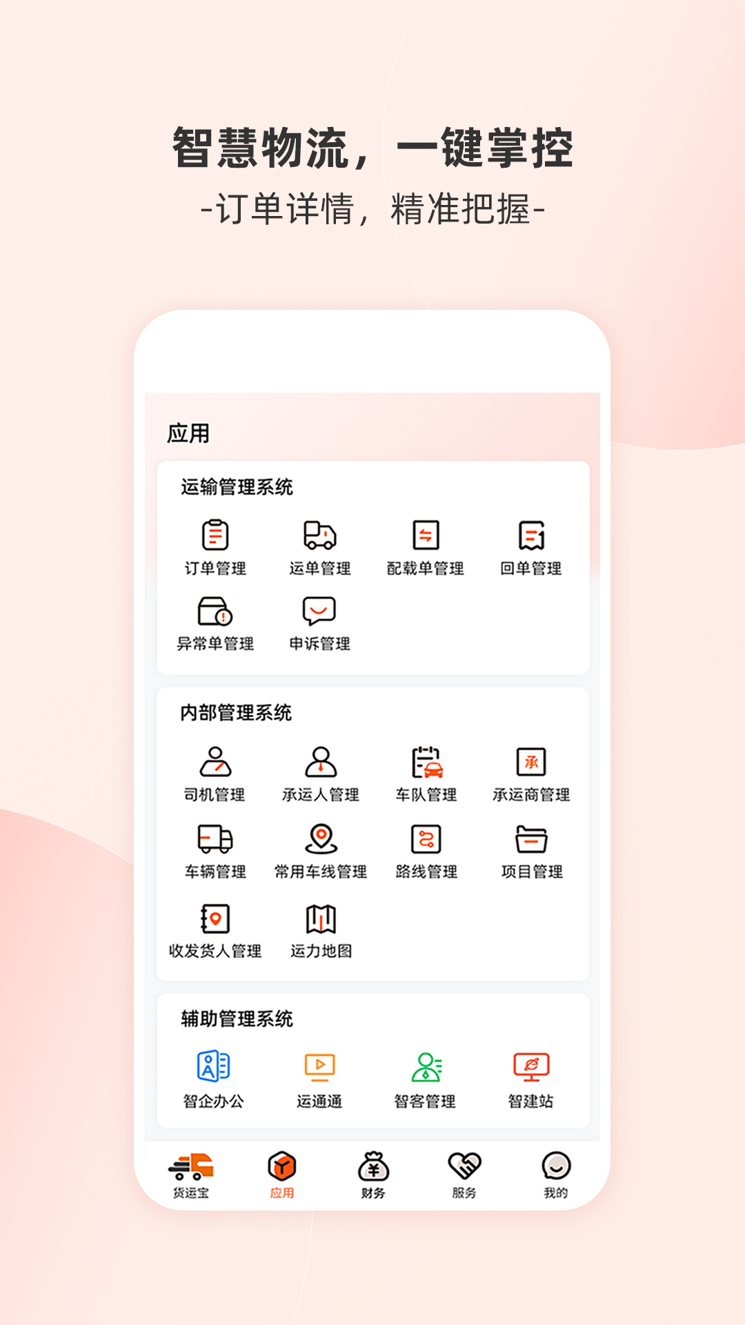 货运宝为物流企业打造了全流程协同的数字化运营系统,这一系统能够赋予企业互联网经营的能力、实现系统化管理以及智能化办公,助力企业朝着规范化、规模化的方向发展。