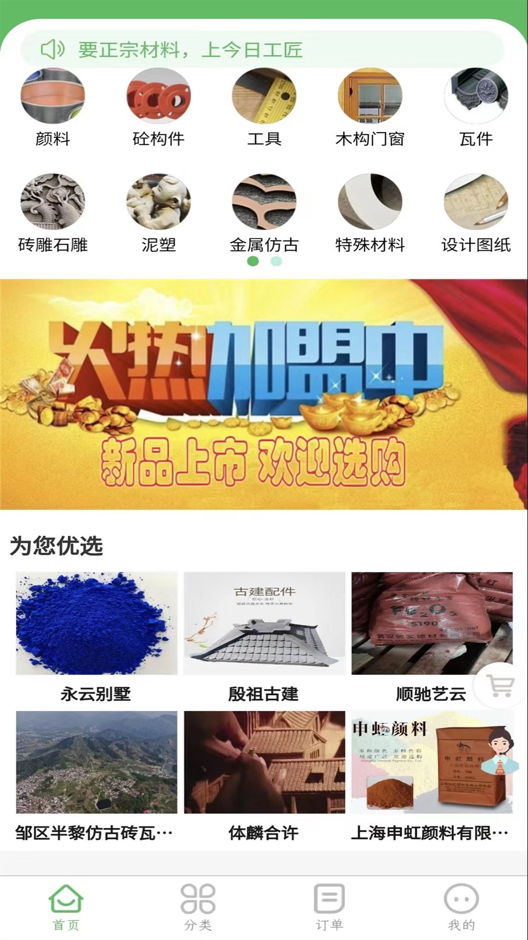 今日工匠大市场APP,这是一个汇聚众多商品的大市场,在古建筑、文物保护、工艺美术、文旅康养以及社会服务等行业的材料和用具用品方面一应俱全,完全能够满足进货购买需求。