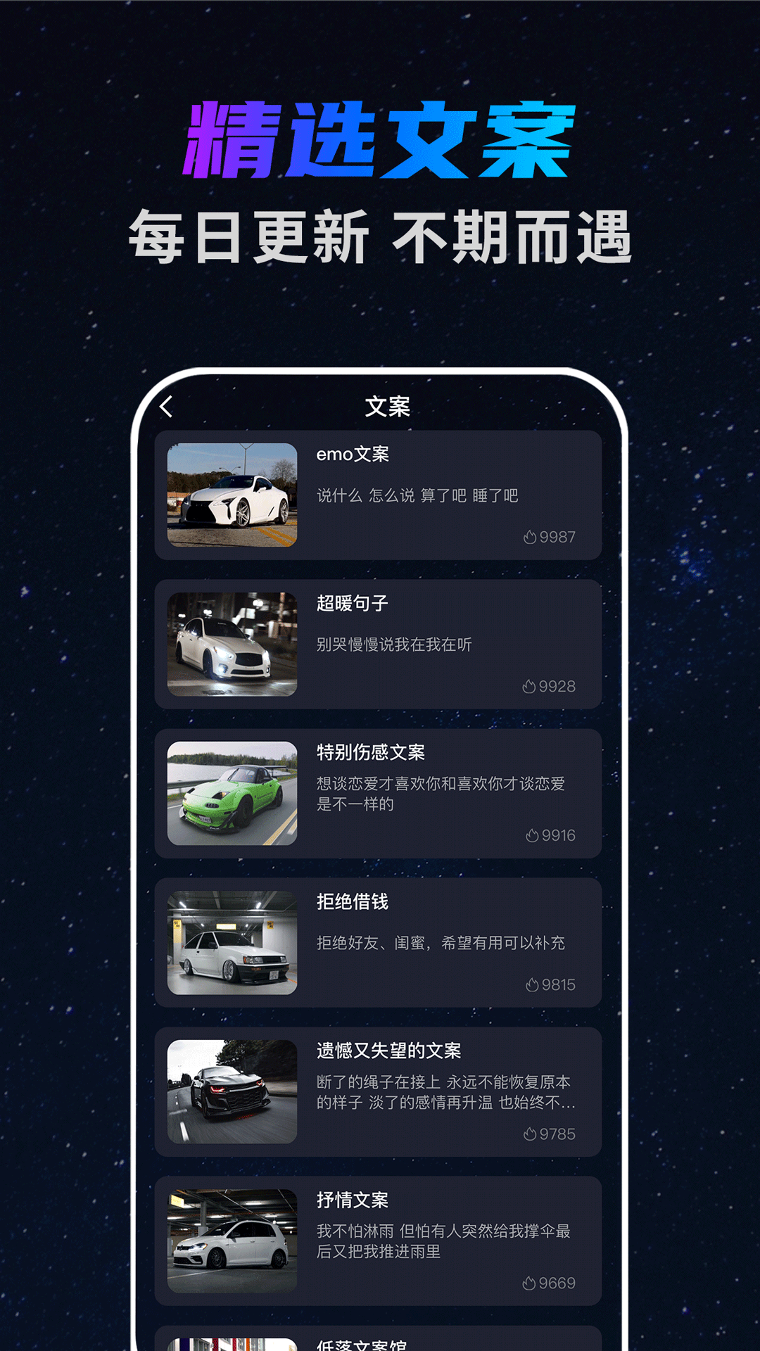 在这里,您能找到豪车、酒吧背景等素材,还有劲爆的音乐以及生活文案等适合发在朋友圈的素材。您可以依据自身需求,挑选不同的素材类别进行浏览,并且还能为素材配音,融入自己独特的声音呢。