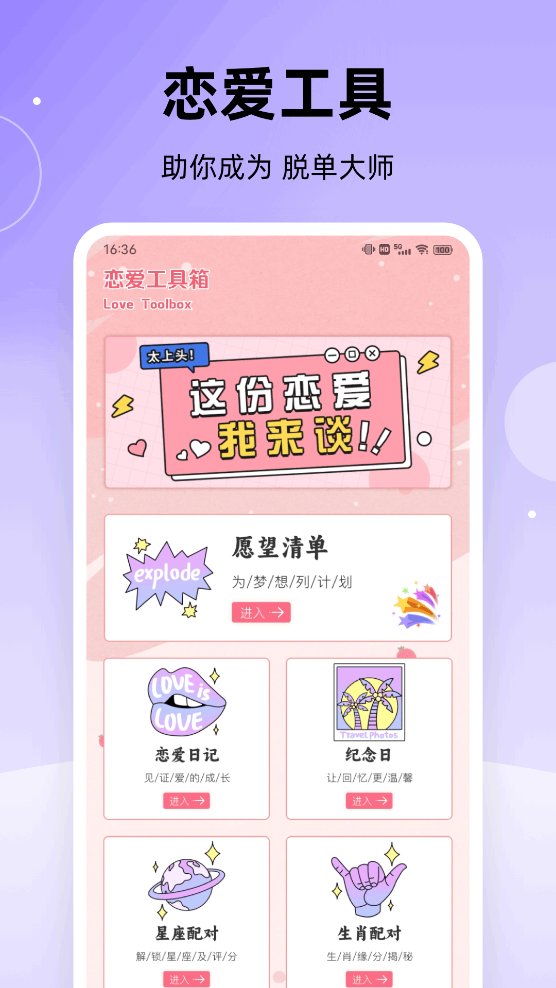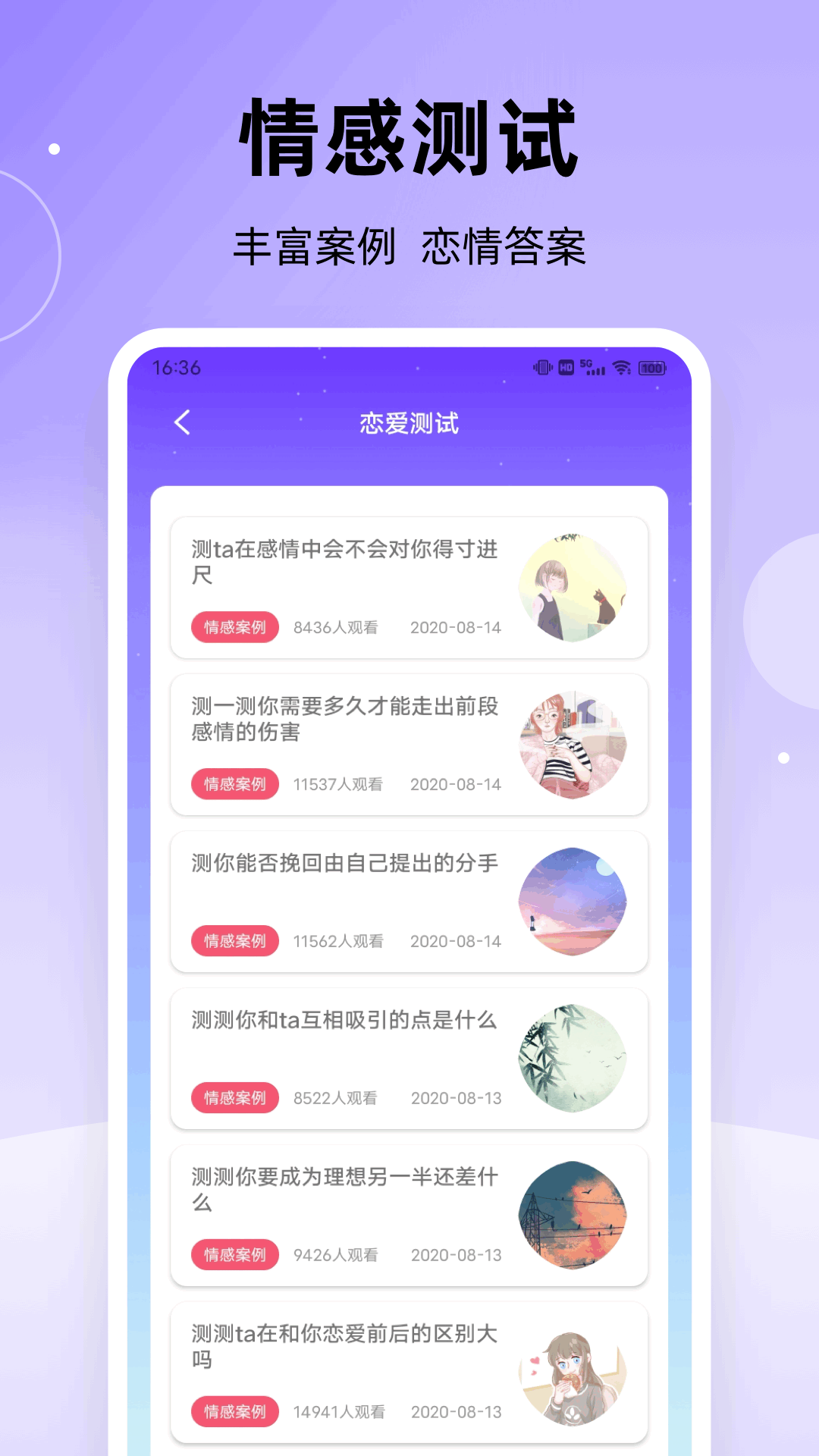 爱情运势测试,恋爱纪念日,生肖配对,还可以测试两个人星座的契合度哦;