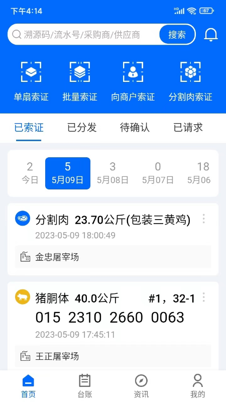 另外,肉证通app还具备产品分销管理、代宰户选择以及电子台账等功能。