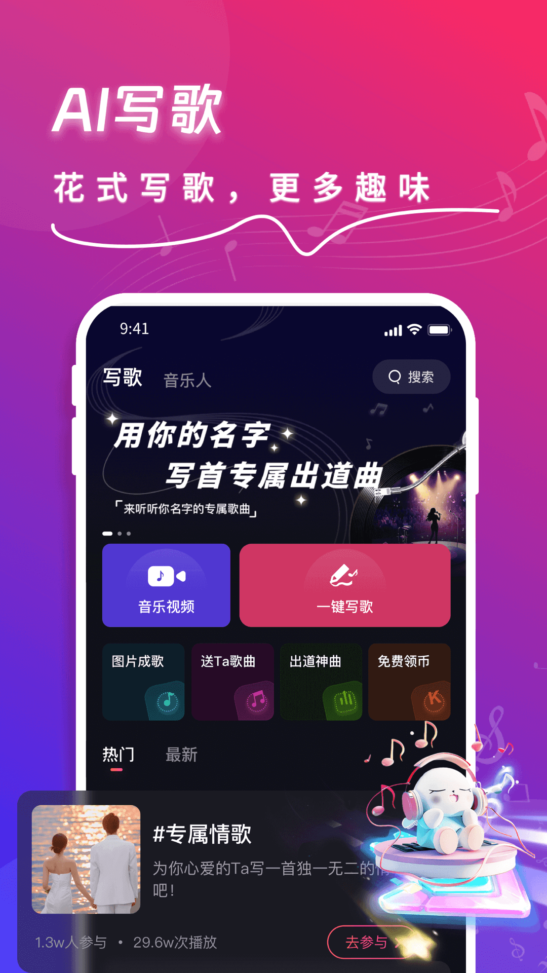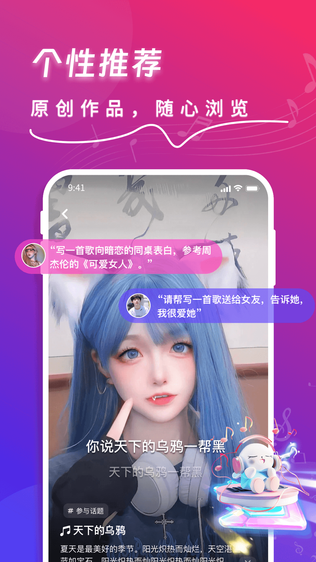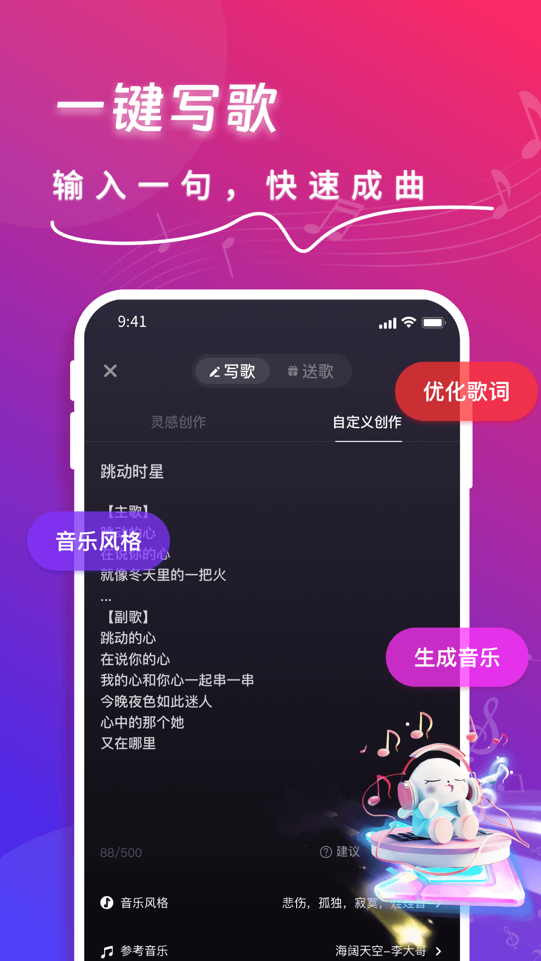 1.新增“音乐心情”玩法,把你的心情和故事写成歌表达出来; 2.会员体系升级,免费写歌次数大放送还有更多超值权益; 3.设置新增产品反馈,有什么建议都可以告诉我们哦; 4. 优化产品使用体验。
