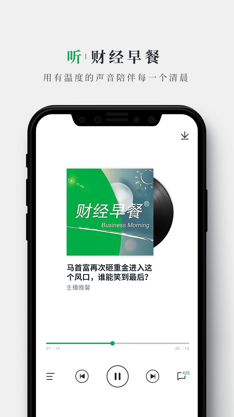 我们增添了内容音频版,解放您的双手和双眼。不管您是在享用早餐,还是在上下班途中,都能轻松获悉有价值、有深度的财经资讯内容以及国内外财经大事,一键操作即可。另外,我们还汇聚了财经早餐三年来推荐的经典音乐,让您在工作之余尽情享受悦耳的音乐。
