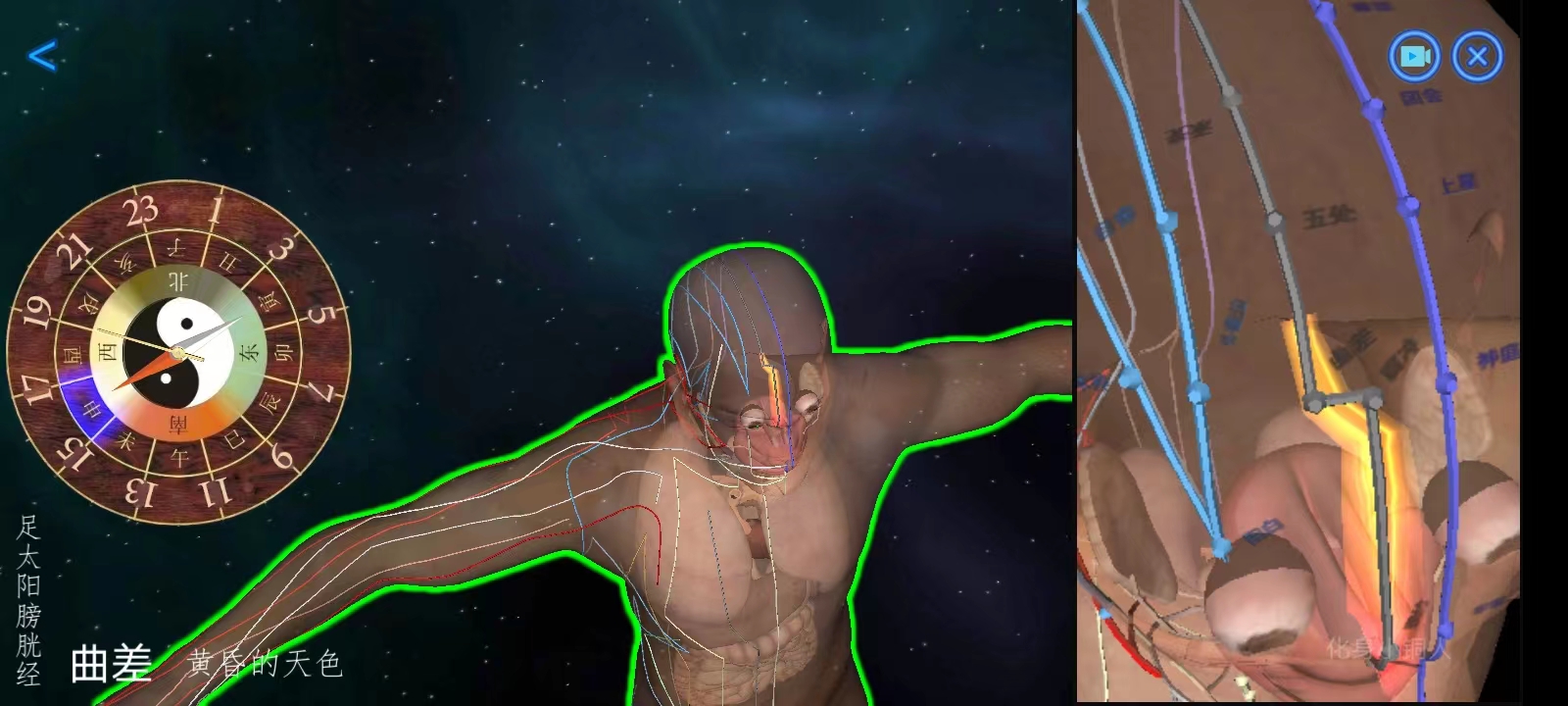 该小铜人运用数字三维技术构建人体模型,并且进行3D展示,方便用户操控模型完整浏览人体的全部经络和穴位。它采用着色器语言,针对人体模型的气血运行进行实时特效的计算并展示出来。此外,借助实时语音识别技术,使用户能够用语音来查询相关信息。