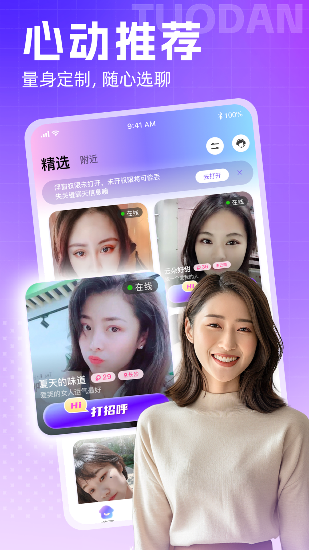 附近见面聊是集聊天交友语音视频为一体,同城有缘人快速匹配单身陌生人交友,附近陌生人单身交友聊天约会的平台。探寻身边陌生人,聊天交友,聊爱聊的话题,约喜欢的对象,早日脱单,幸福人生。孤单的灵魂不在无趣,快速找对象处cp恋爱,相信缘分百分百就在身边,同城交友、附近约会、单身聊天、灵魂交友、陌生人交流。同城附近500米单身异性快速匹配,喜欢就点击聊天,合适就恋爱约会。