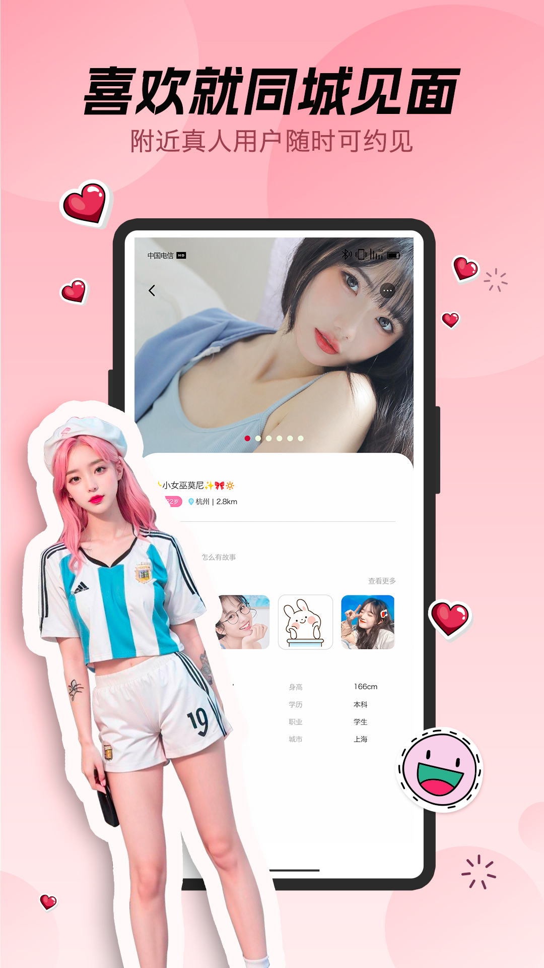 【海量推荐】众多同城用户在此静候,足以满足你精挑细选的需求,从而找到兴趣相投的伙伴。