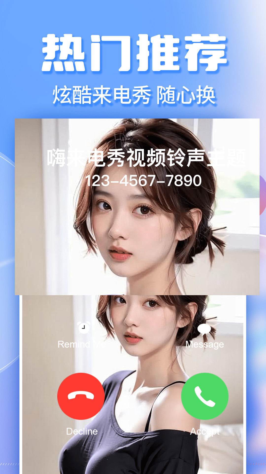 收集了网上热门的短视频,明星、美女、网红、搞笑、动漫、游戏、萌宠...海量来电视频任你挑选,一键设置,轻松搞定。