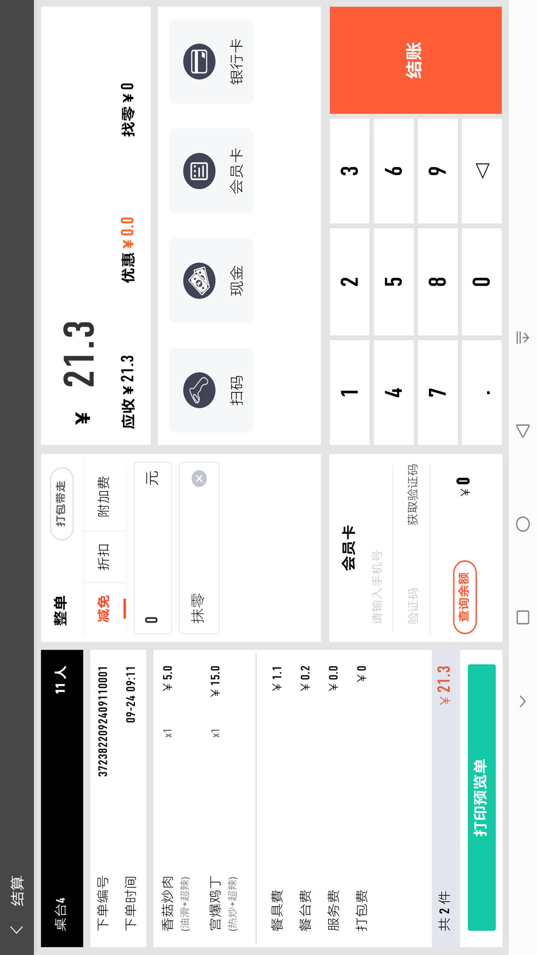 •【打印】前台可打印结算单,后厨能够通过多台打印机依据菜类分开打印。