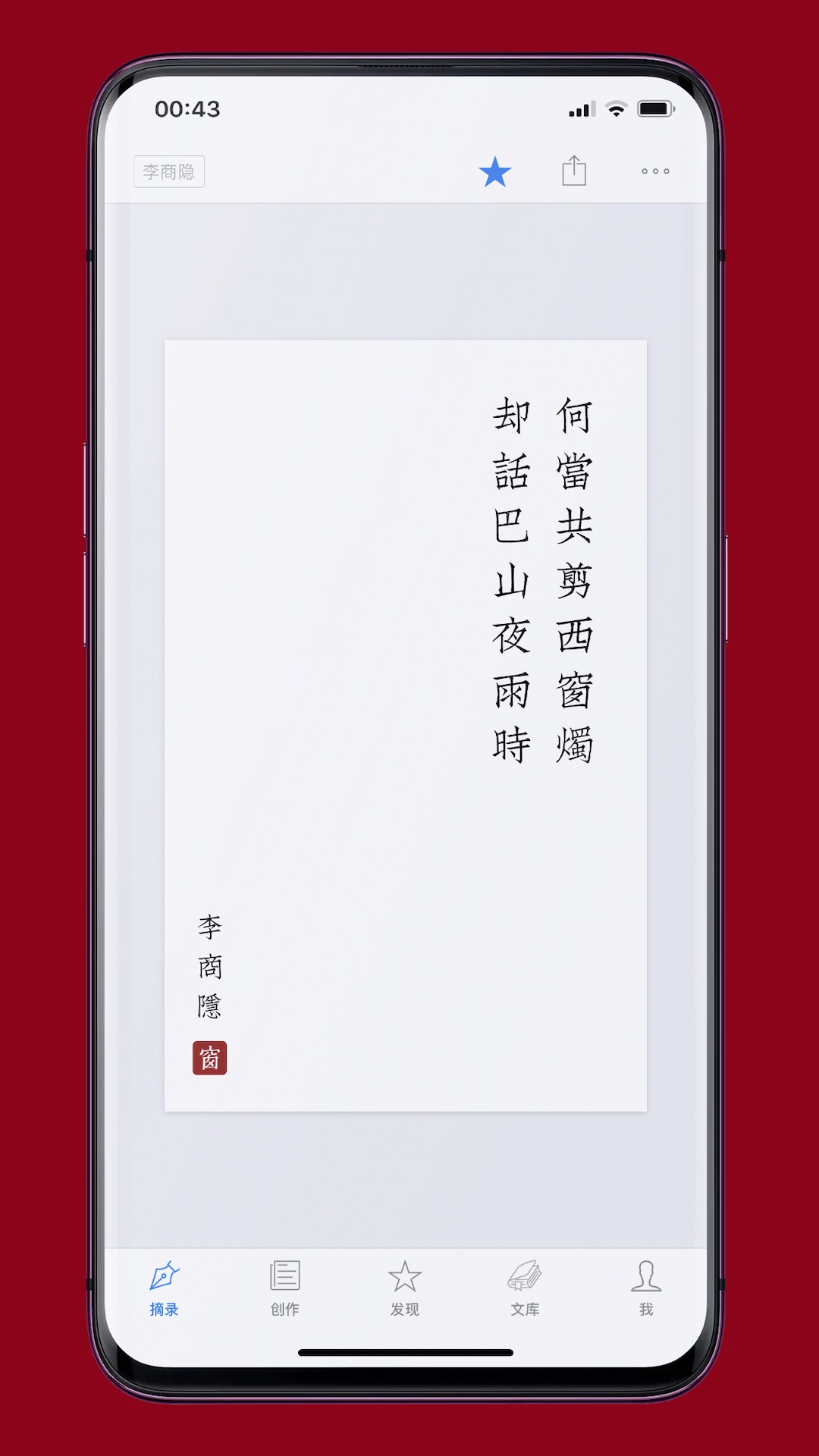 名句卡片:从浩如烟海的诗词中精选出数万条名句,您能够随心制作成卡片。卡片功能多样,支持简繁切换、字体切换,满足不同的需求。