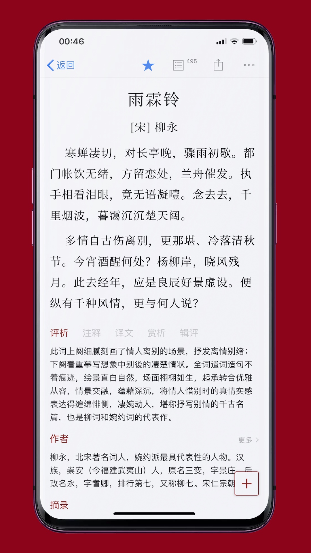 风格简约:整个应用无广告烦扰,没有社区互动,不存在社交功能,界面简洁纯净,排版整齐清晰,为您打造一个专注于诗词欣赏的空间。