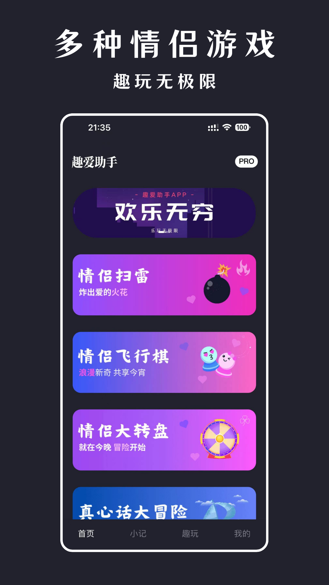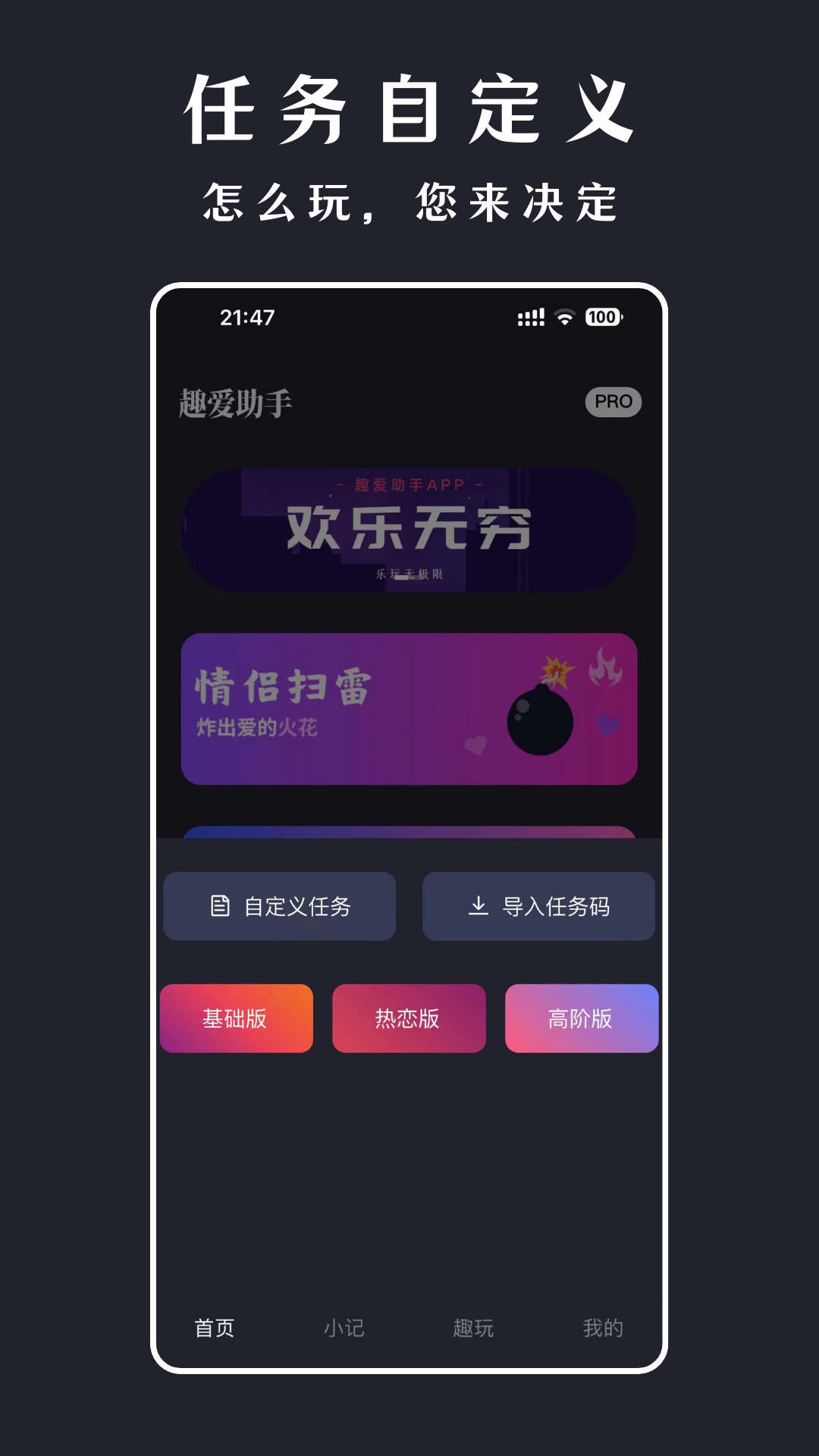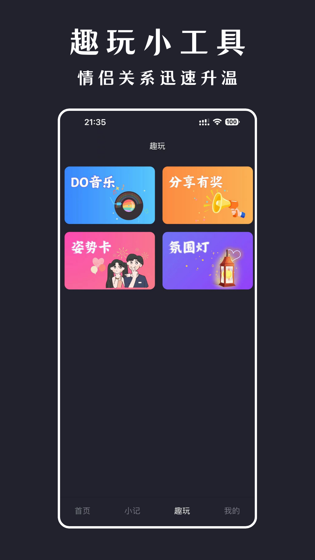 趣爱助手,带你尽享无限乐趣。这是一款专为情侣打造的浪漫升温神器,是充满趣味的情侣约会游戏APP。