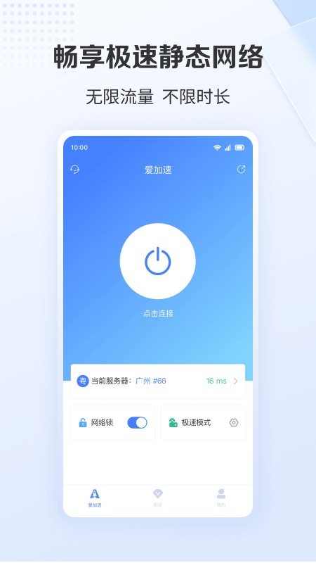 爱加速提供境内的网络加速服务,其静态IP服务器能够稳定连接,2300多个位于不同地区的境内服务器(静态IP地址)为用户提供网络安全接入服务。它可以保护手机网络,屏蔽恶意广告,让用户轻松掌控网络安全与速度。