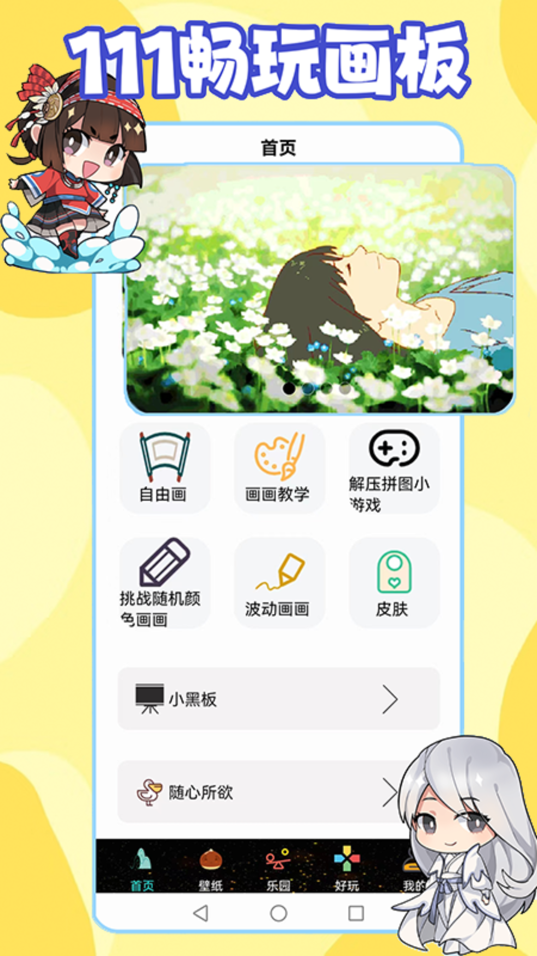 为所有玩家用户用手尖休闲轻松画画、涂鸦画乐园APP,意在吸引伙伴的画画兴趣,激发其想象力,激发伙伴的艺术潜能,完成心意的绘画,可以用来做成手机壁纸,每天可以欣赏爱图,有个美好心情。