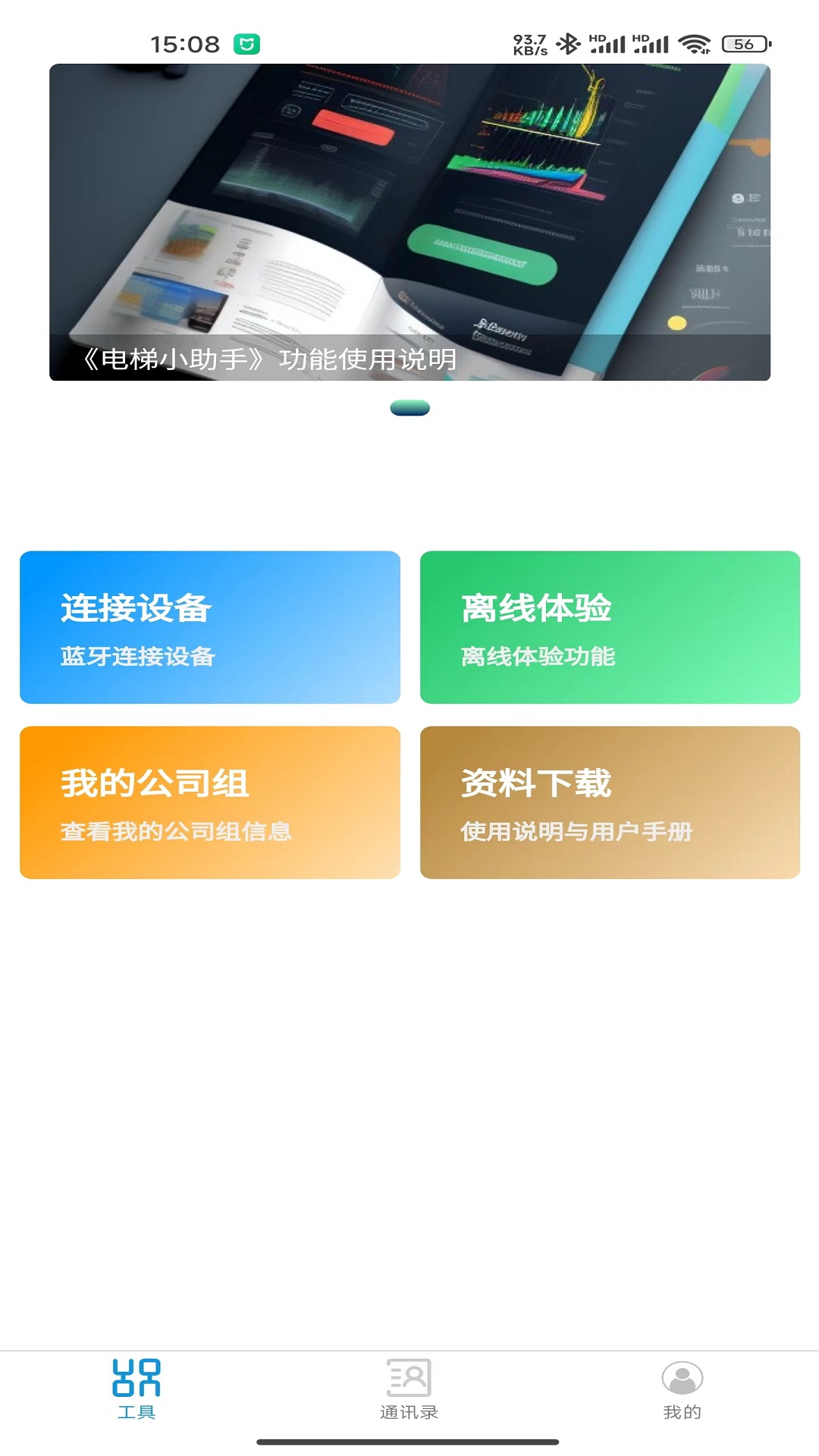 1通过蓝牙连接设备查看电梯设备信息 2离线体验可以在没有蓝牙连接器的情况下提前体验功能 3.群组与管理授权功能 4.程序烧录与非标改制功能 6.通讯录功能 7.远程协助功能 8.好友参数包分享功能
