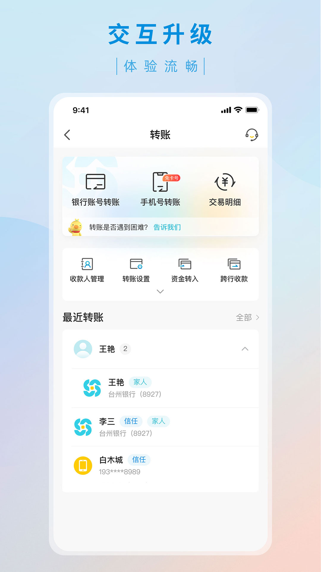 其二,交互体验得以提升。转账、登录功能的交互经过优化后,操作起来更加流畅顺滑。