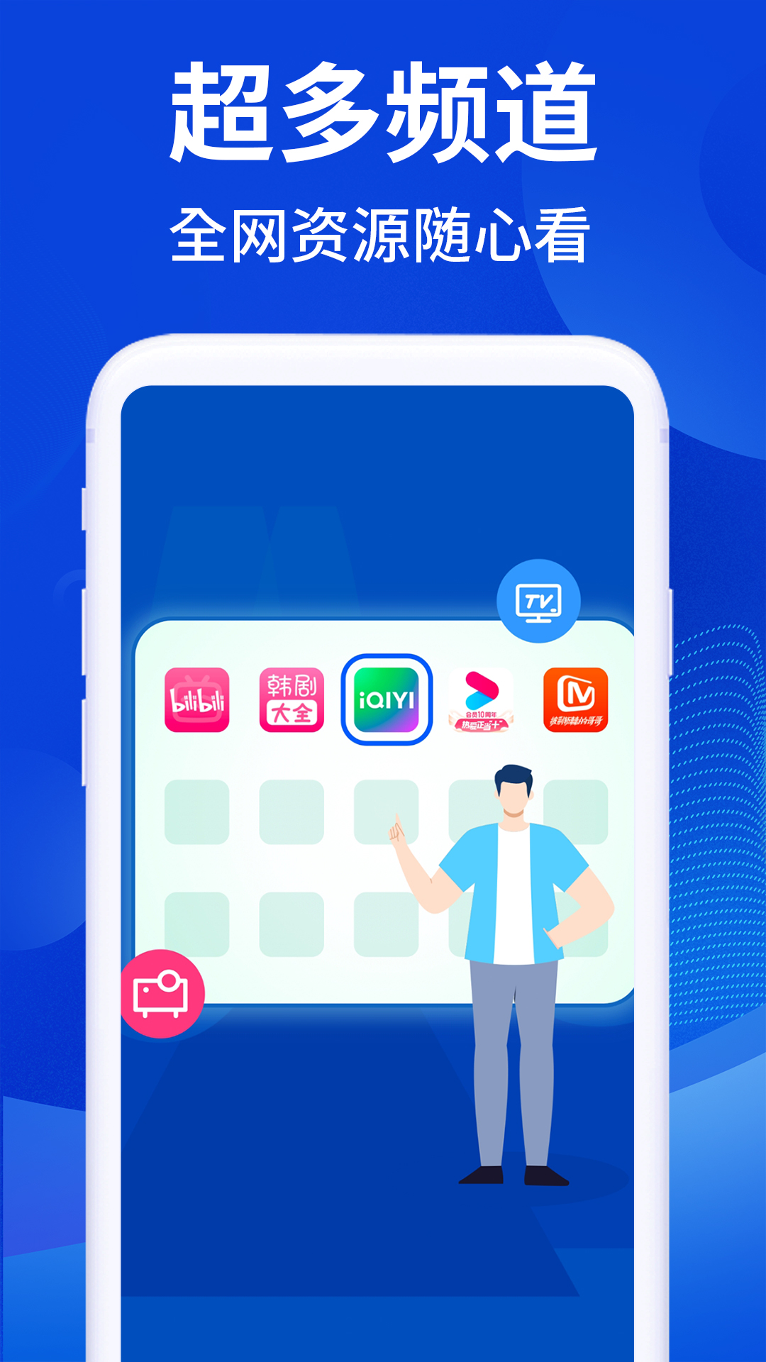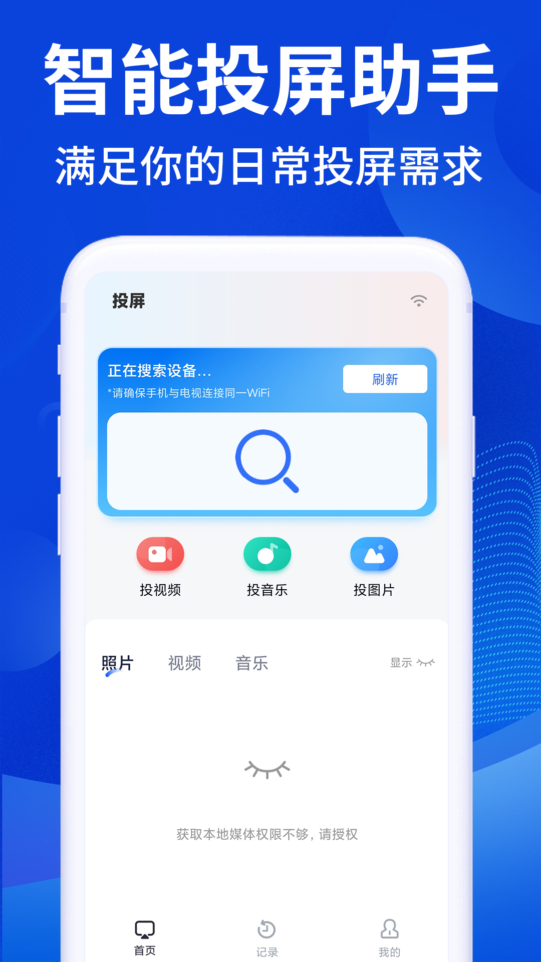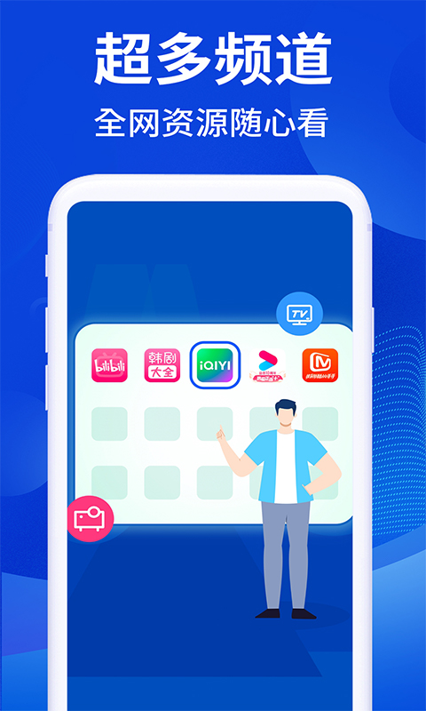 手机电视投屏TV,能够让手机与电视轻松相连。它可以识别本地文件,将手机中的视频、音频以及图片以高清的画质投影到电视屏幕之上。