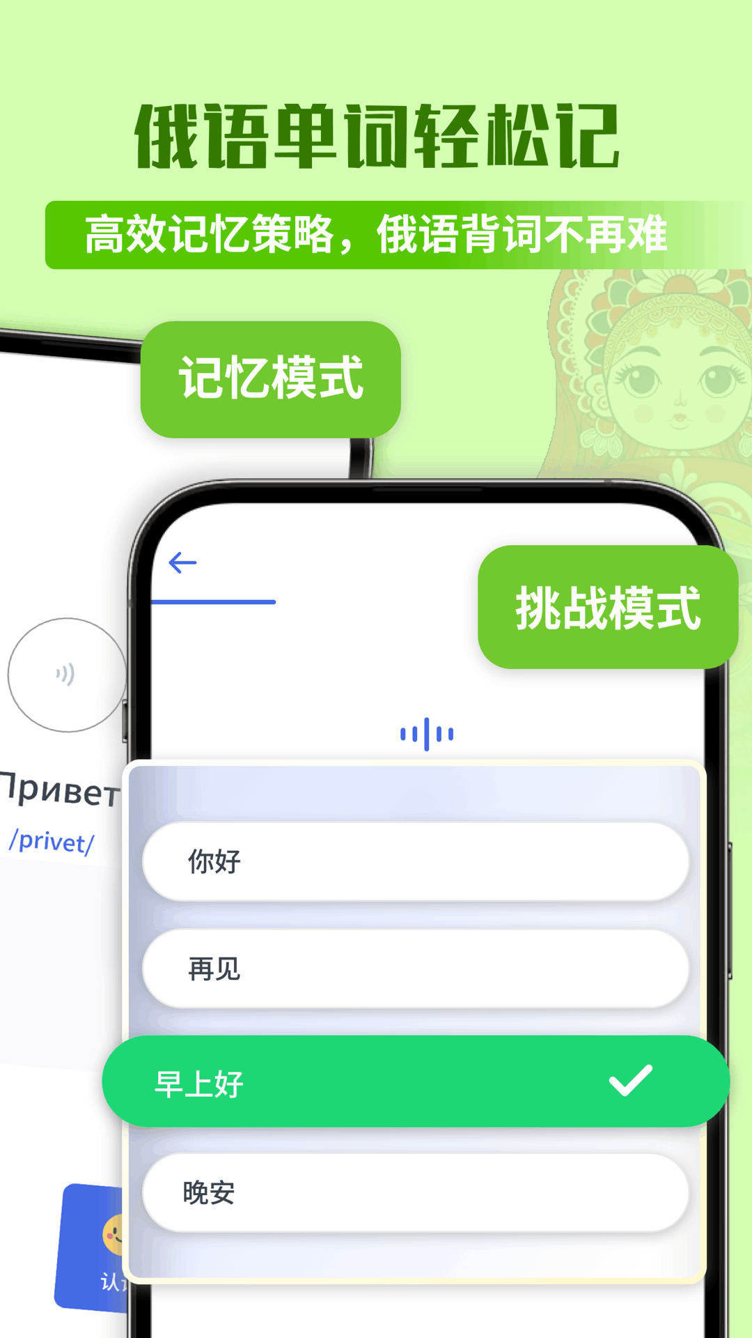 马上下载俄语单词随身听,让俄语学习变得更为轻松、高效、有趣。