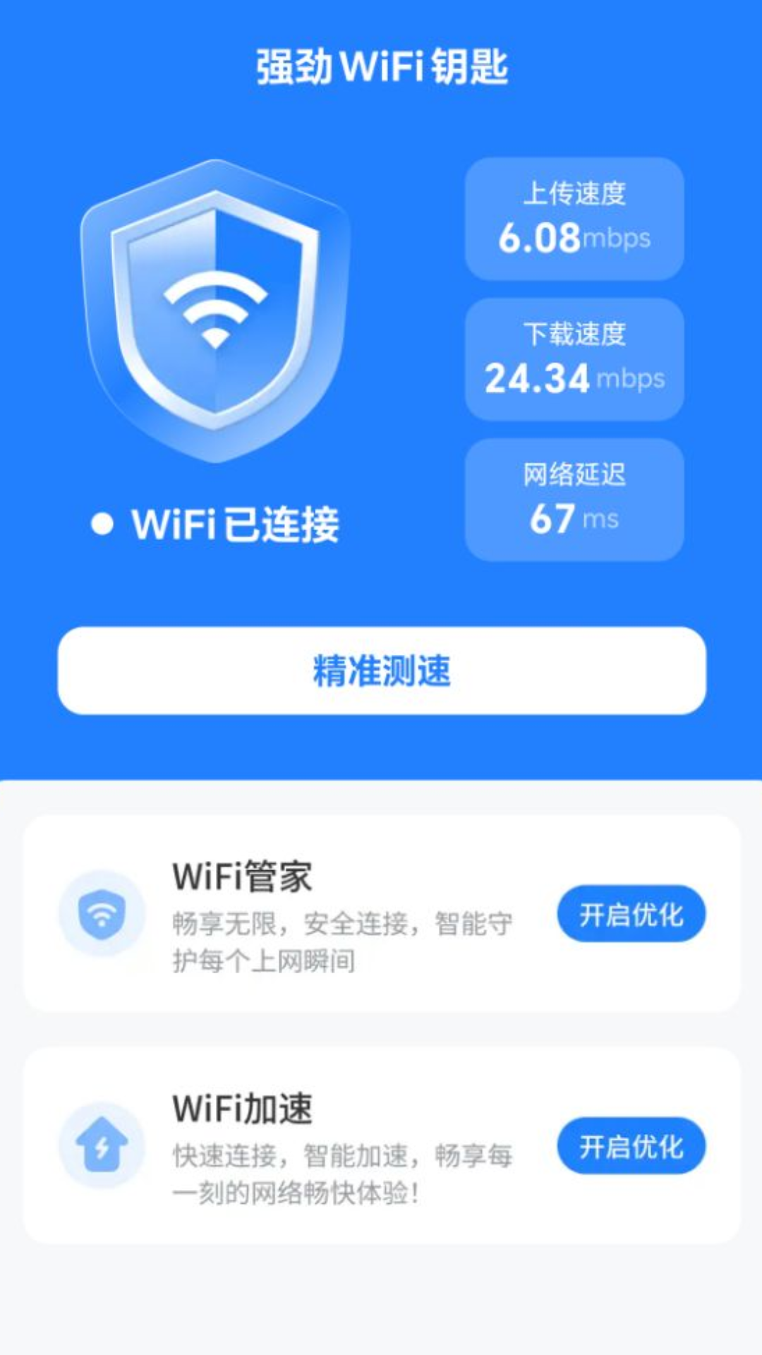 网络测速+WiFi管家+WiFi加速:无论您是在观看视频、玩游戏还是下载文件,强劲WiFi钥匙都能实时监测网络速度,确保您获得最佳的上网体验。