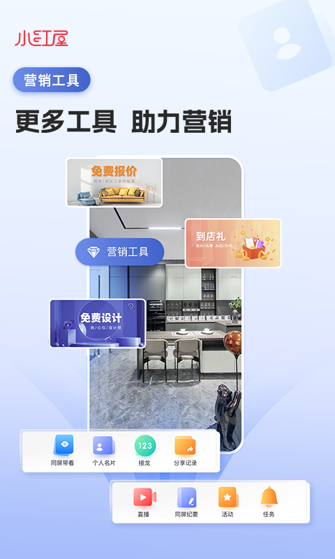 2. 制作和展示全景作品、超级图文、楼书等高质量内容,并将其分享到主流社交平台以及小红屋装修圈。
