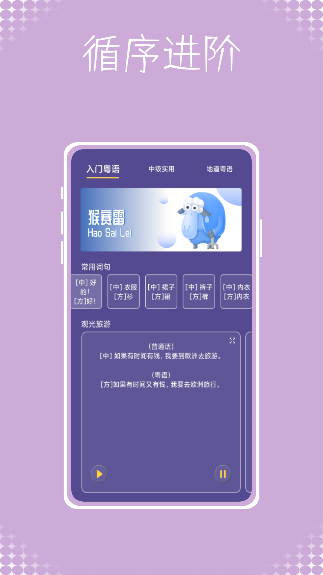 粤语学吧是一款粤语学习应用,它的功能既丰富又实用,使用起来也十分便捷。该应用涵盖了从基础到进阶各个阶段的学习内容,能为用户提供个性化的学习计划,还支持真人发音练习。这使得不管是刚入门的初学者,还是已经具备一定粤语基础的学习者,都能够在粤语学吧里寻得适合自己的学习内容以及学习方法,从而快速且有效地掌握粤语。