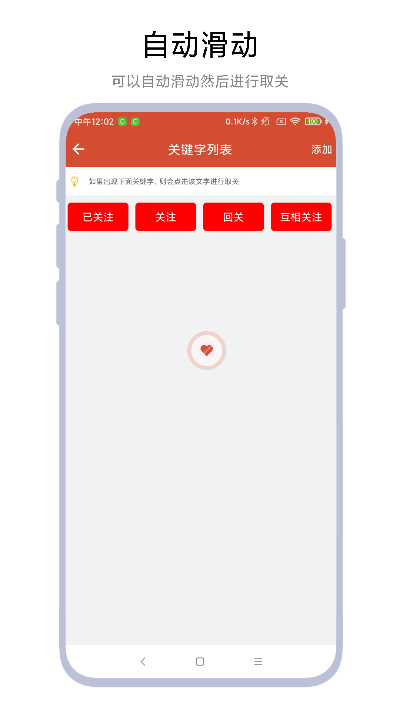 有这样一款APP,堪称一键取关神器。它是专门用于快速取消自媒体APP中关注列表的工具。这款软件具备一些非常实用的功能,比如能够设置取消关注的关键词,还可以模拟自动滑动屏幕,并且能够设定取消关注的次数。当用户开启必要的权限之后,仅仅点击一下悬浮球,软件就会自动开始执行取消关注的操作,整个过程快速又便捷。
