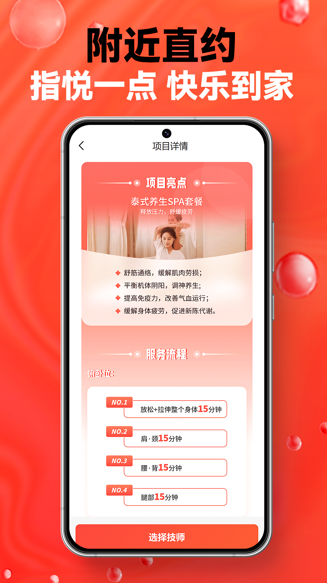 与到店按摩相比,指悦到家无需承担房租成本,所以用户能够享受到更有家的舒适感的服务,既舒适又优惠。只需轻松一点指悦到家,就能享受服务。