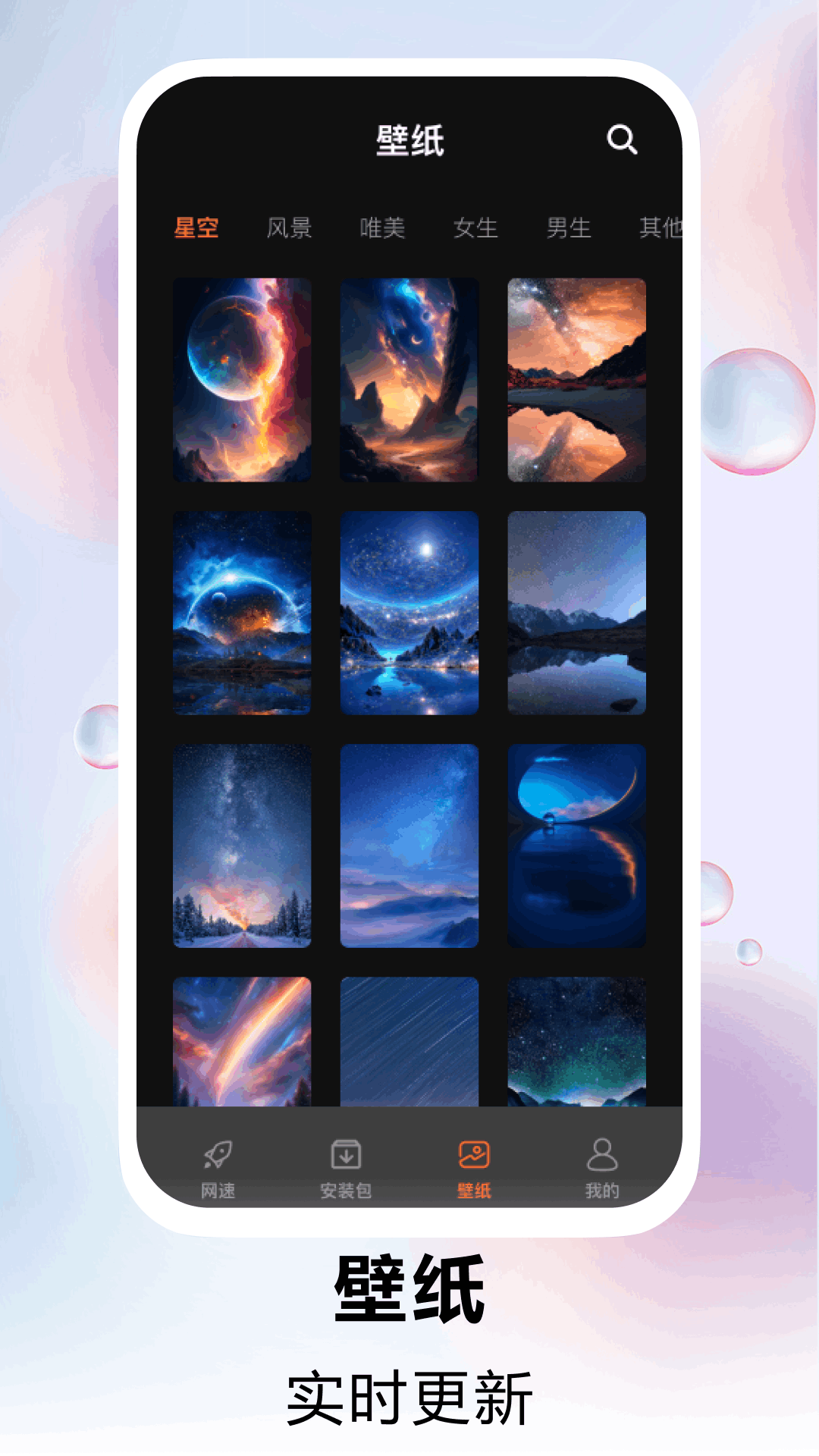 壁纸,虽是小事,却至关重要,星速从未有过丝毫懈怠。不管你是常常寻觅精美图片来做壁纸,还是独爱用自己相册中的照片充当壁纸,星速都能满足你的需求。此外,星速还搭载了网络检测、安装包管理等功能。