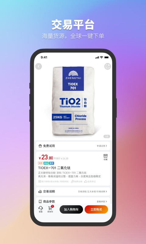 它能够有效地链接化工产业的上下游,从而达成大宗化学商品的在线交易。正太化学的试用中心可以为客户提供样品免费试用服务,并且能够快速将样品送达客户手中。其指数交易能助力客户跨越周期波动,打造一个有助于持续成长的平台。借助化工快讯,用户可以及时获取化工行业的最新动态。另外,通过航拍以及VR实景的方式,客户能够了解企业的实力,还能在线轻松参观工厂环境。