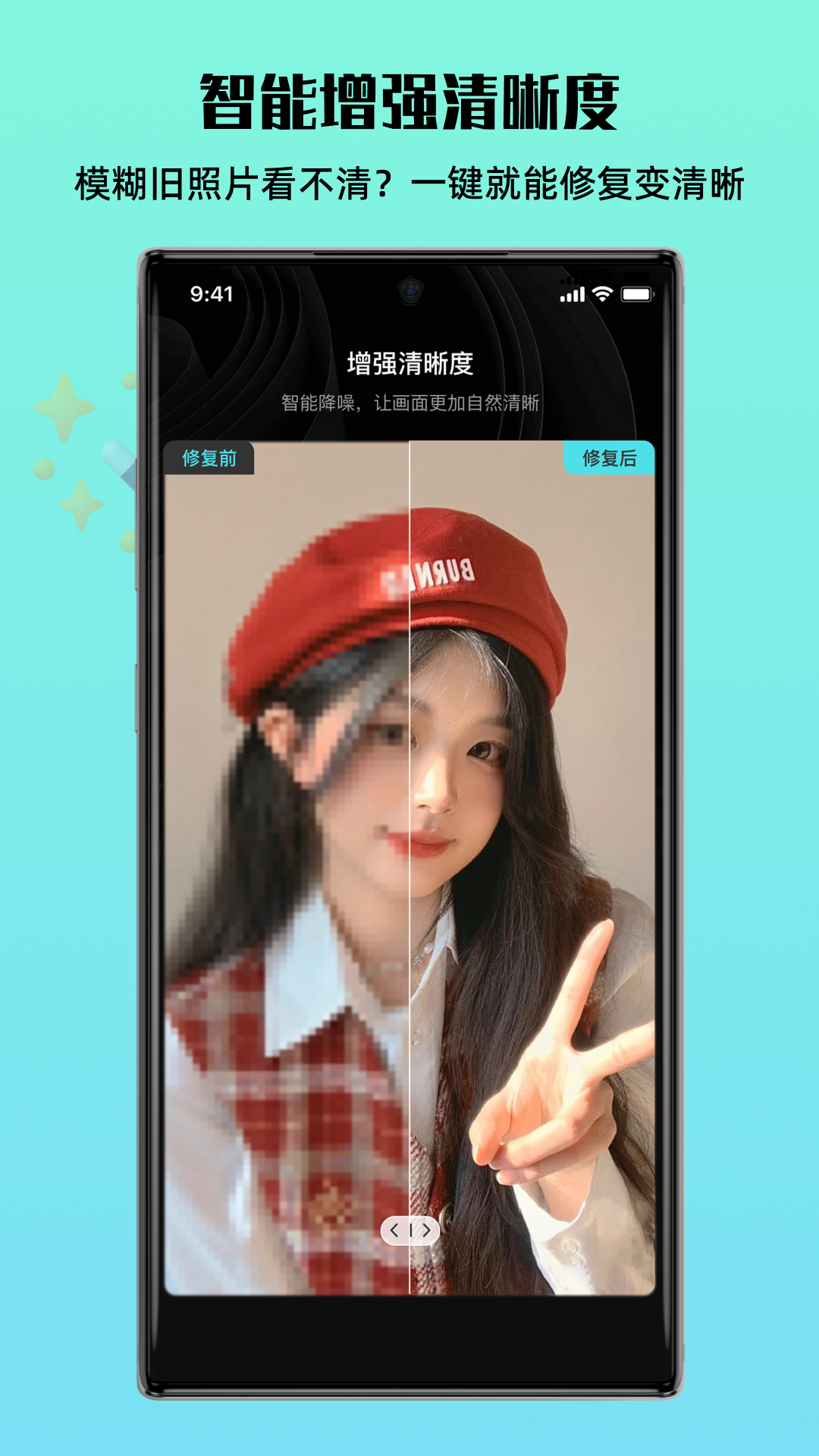 模糊旧照片看不清?来照片全能王一键就能修复变清晰