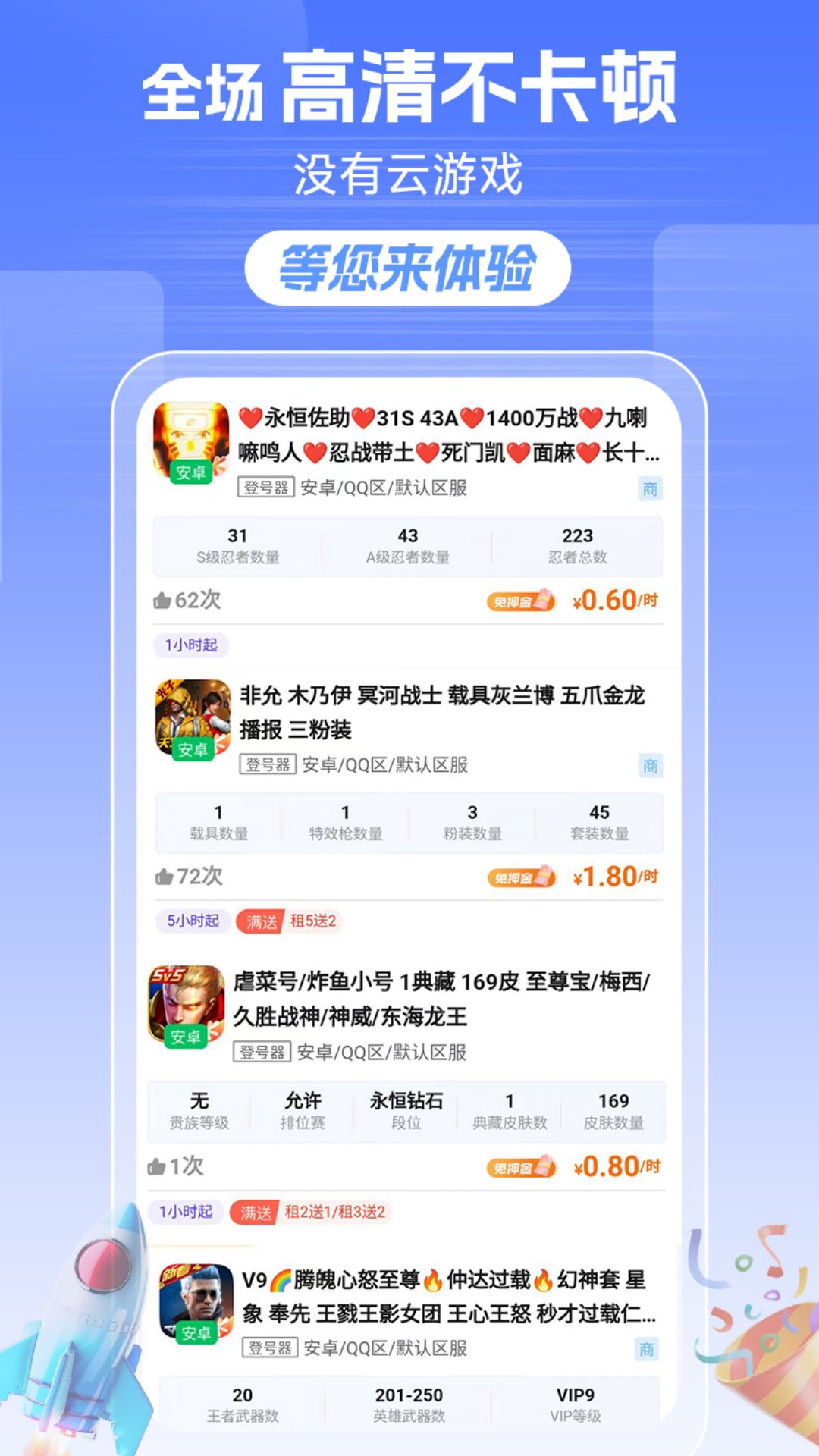 全品类的游戏覆盖——提供当下热门游戏(王者、lol、和平精英等)、火爆新游的账号出租