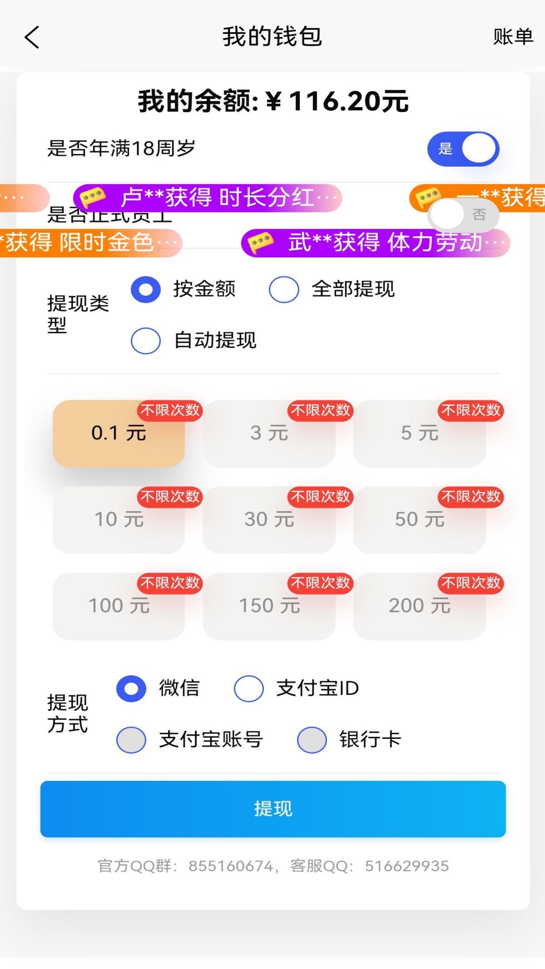 7. 自动到账:提现时,金额会自动到账您的微信零钱或者支付宝,不需要人工审核。