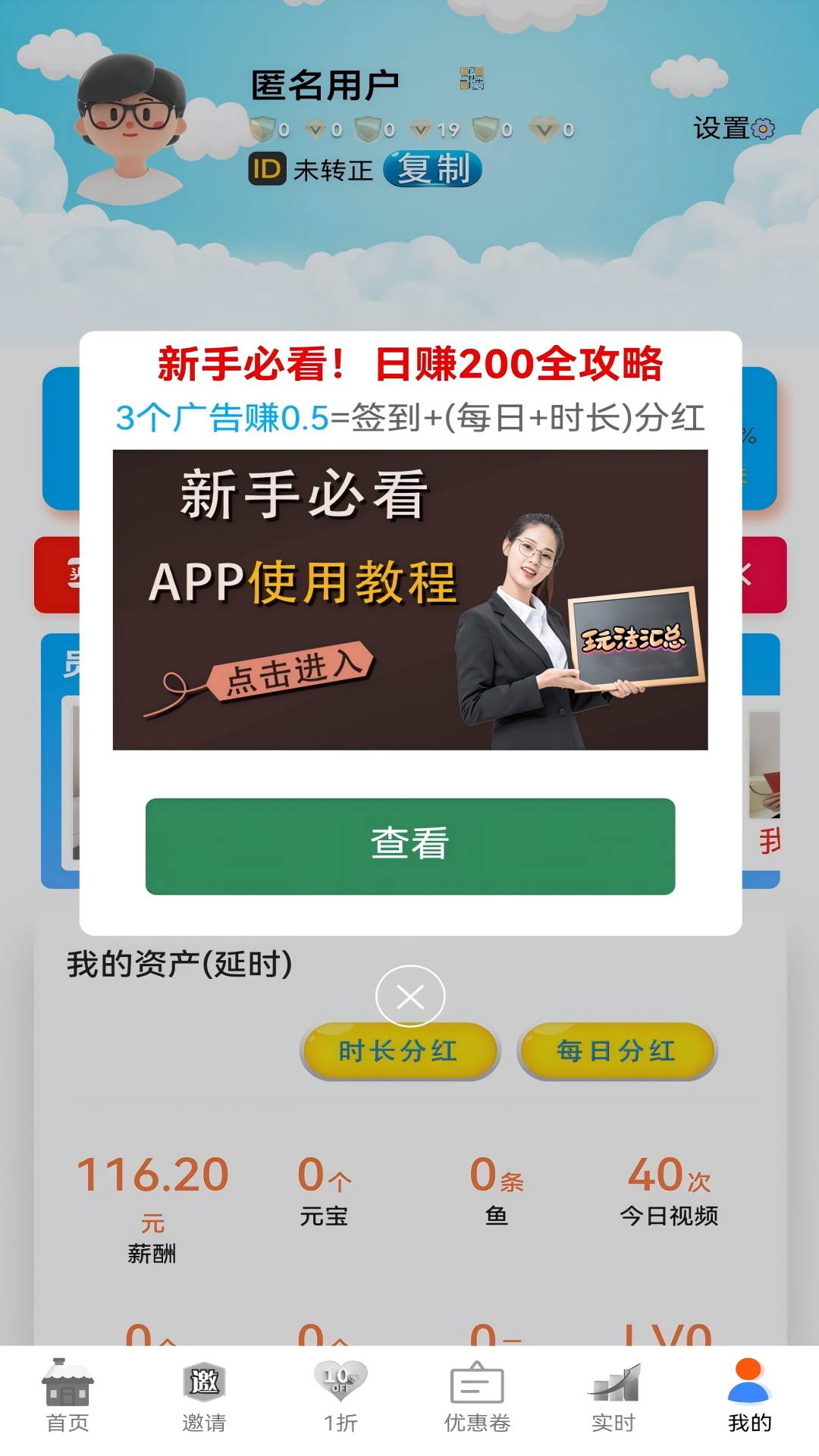 1. 时长分红:每天只要挂机1小时,就能轻松白拿0.3元。