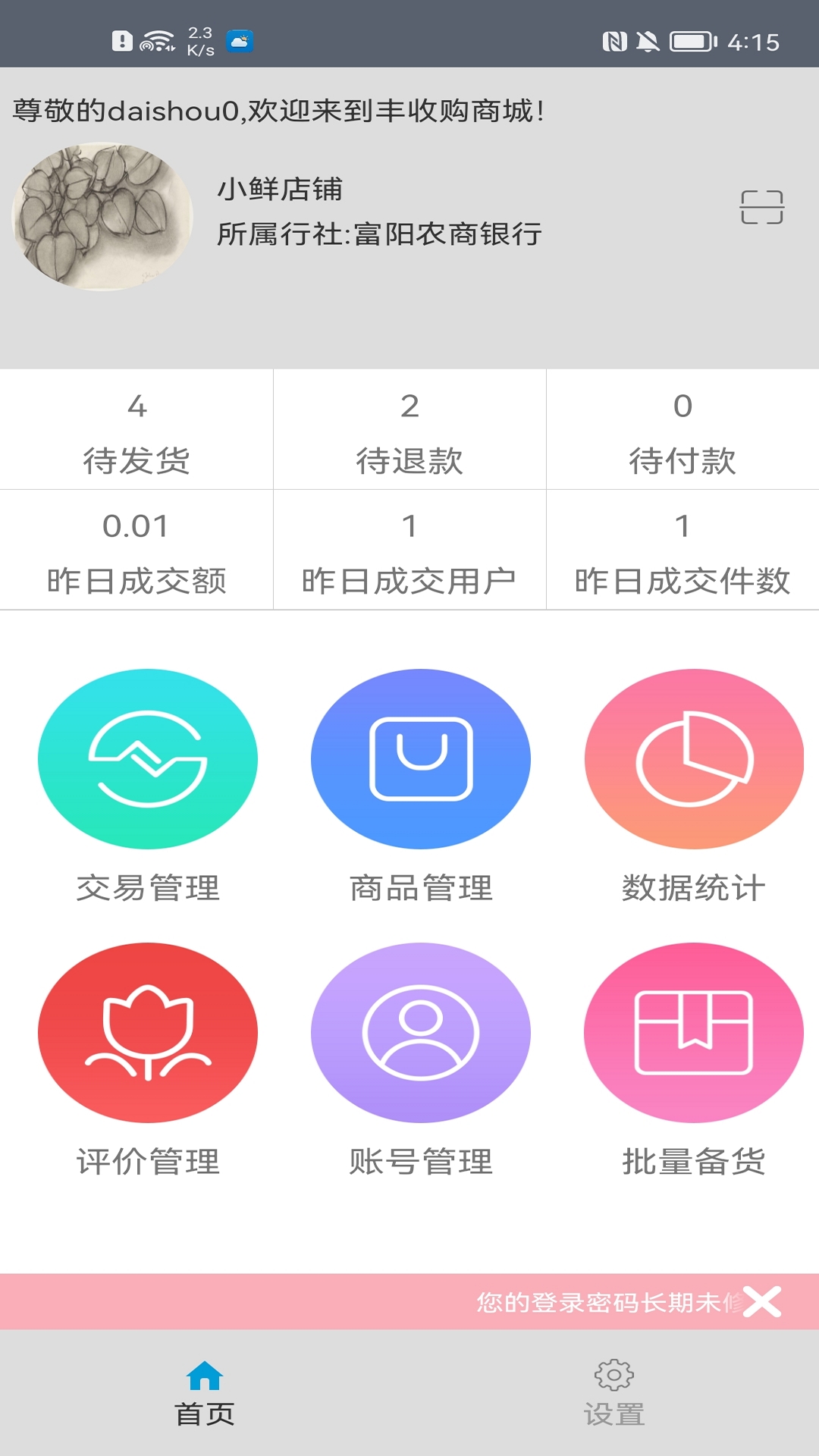 丰收购商户版则是一个面向浙江农信丰收购平台所有入驻商户的电子商务平台,该平台为商户提供展示、销售、支付、结算等全方位的商户管理功能。