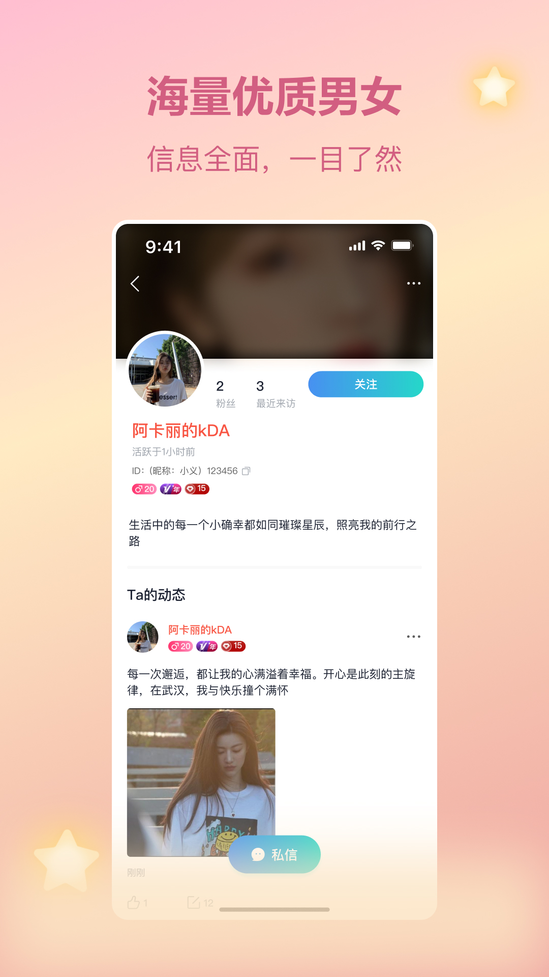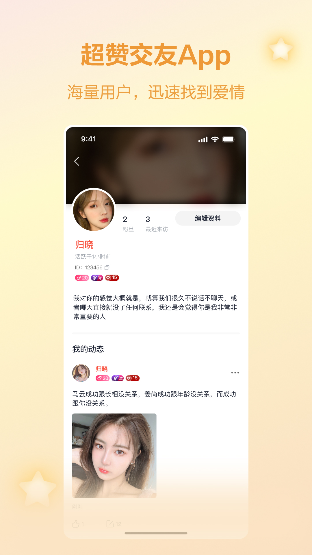 【我的】编辑个人资料丰富立体形象,吸引更多异性哦。