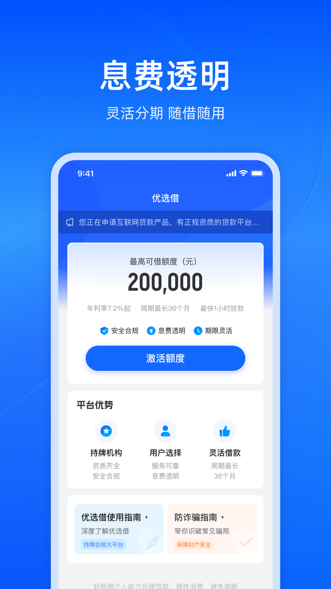 2. 贷款资金由正规的、持有金融牌照的机构提供,额度、利率以及放款时间都要以最终的审核结果为准。