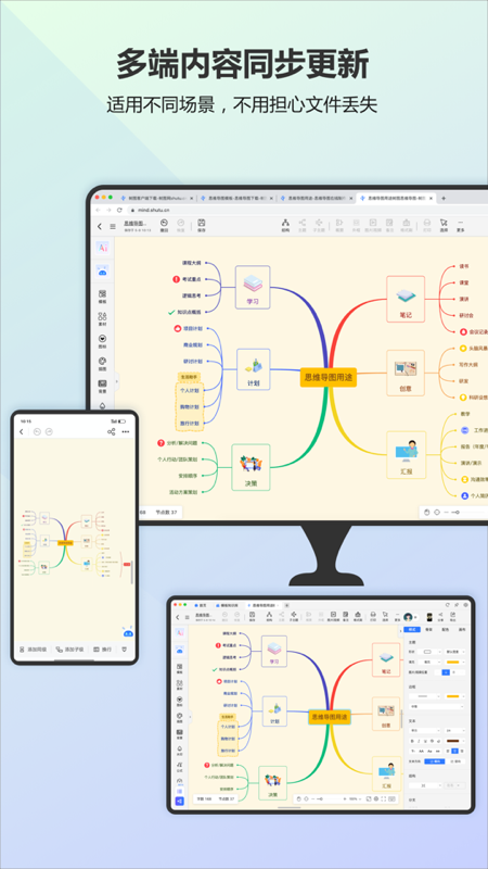 其二,支持跨平台文件同步功能。无论您是在电脑端、移动端还是其他设备上使用树图思维导图,都能够轻松实现文件的同步,确保您随时随地都能获取到最新的思维导图文件,不会因为设备的切换而影响工作或学习的进程。