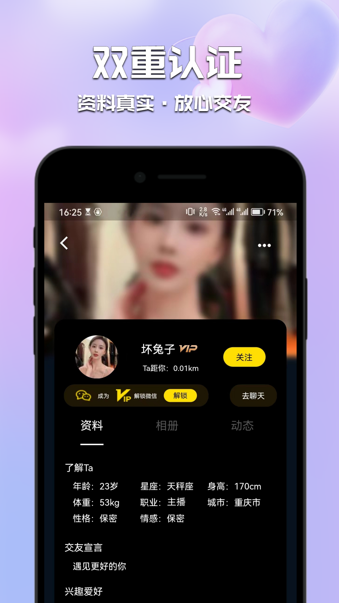 【真实可信】真实是甜心佳缘的根基,所有会员均经过真人认证,并接受严格的资料审核,只为给您营造一个安全、可靠的社交氛围。