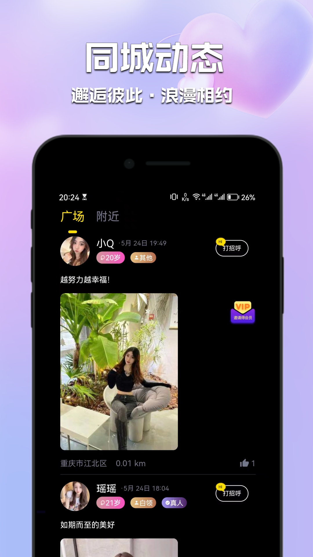 【附近动态】这里会为您推荐真实的同城圈子动态哦!美好之事就要与大家一同分享,也许就在分享与浏览之中,您就会邂逅那个甜甜的另一半呢!