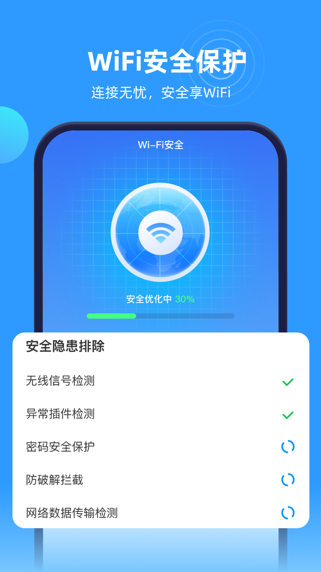速连WiFi钥匙是免费的网络工具管理应用,提供了免费安全保护,让您连接无忧,享受安全WiFi,可以一键体验网络加速,优化WiFi信号频段,同时检测异常接入设备,智能警卫,拦截蹭网设备!