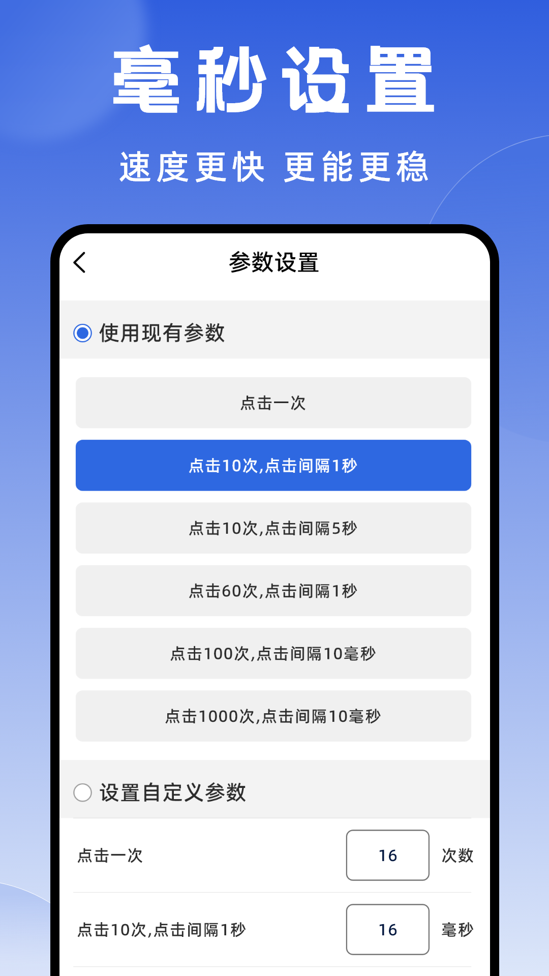 连点器大师可以任意在点击器中设置点击位置、点击频率、滑动手势等任何操作,通过手势的录制完成复杂的操作,支持多种模式,