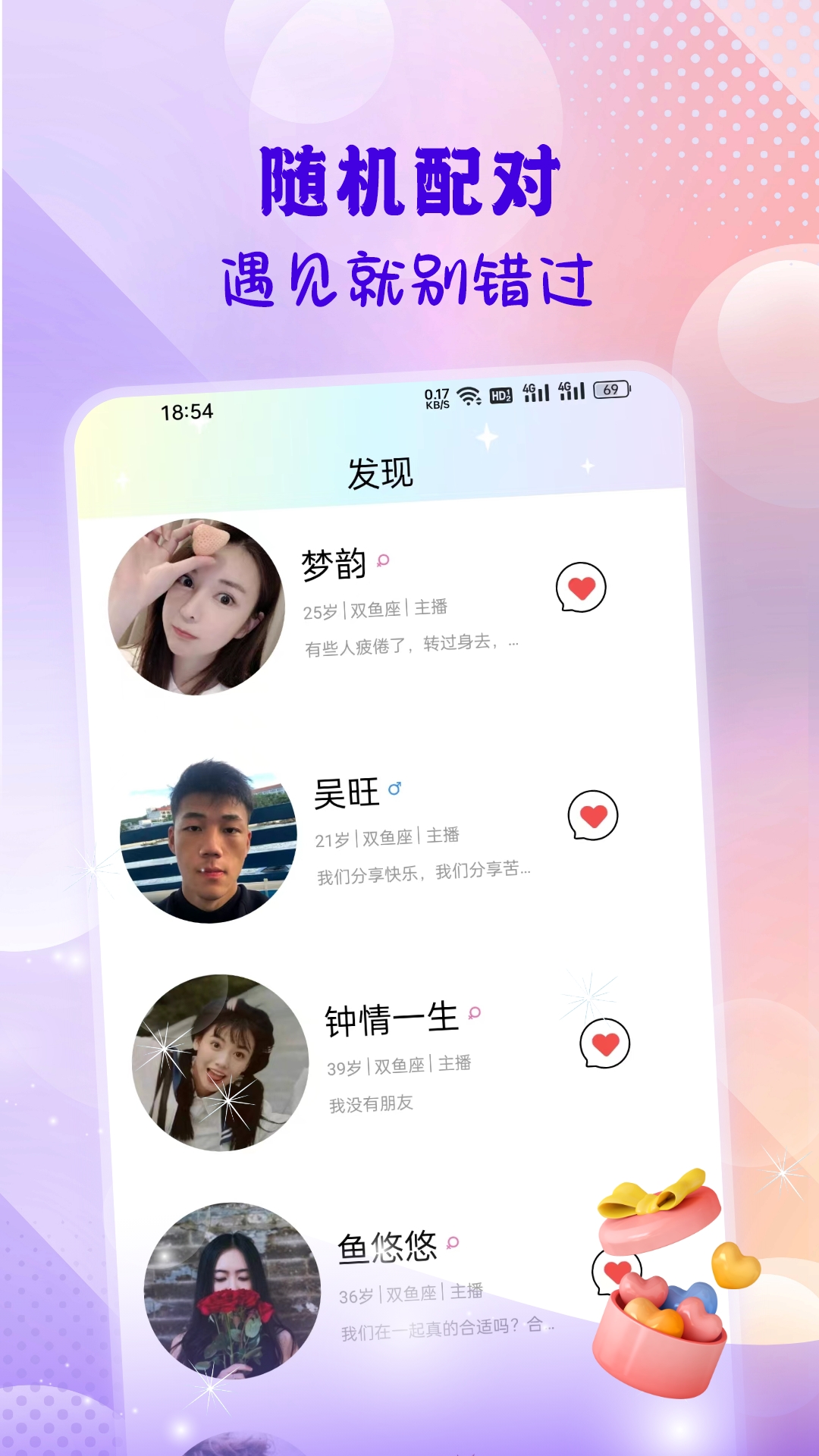 【聊天交友】为大家打造了视频语音聊天交友互动体验,无论是视频还是语音,都能让你随时随地与他人尽情畅谈,不受任何限制,真正做到畅所欲言,让彼此的交流变得更加生动、直接。