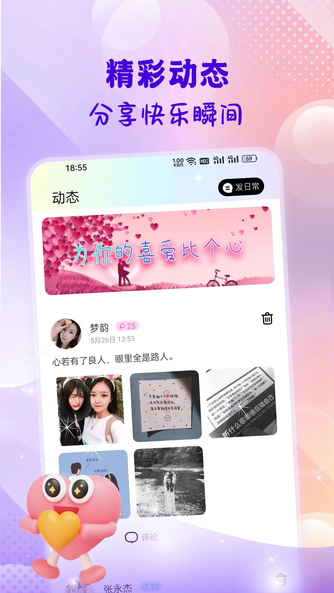 【生活动态】你可以随心所欲地发表自己当下的心情,分享生活中的点滴感悟。同时,也能够随时了解大家的动态,倾听来自各方朋友的心声。