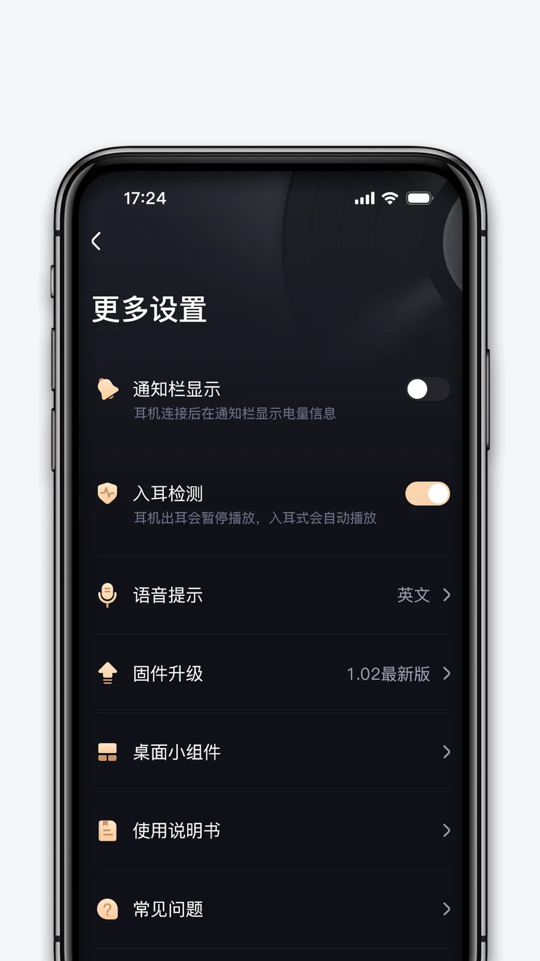 听智慧真定制无线耳机配套App,可以在App中管理耳机设备、升级耳机固件、定制耳机等服务。
