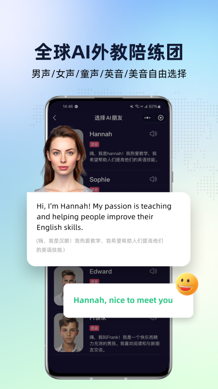 为了增强对话的真实感,我们打造了多种AI角色,小哥哥和小姐姐的形象超级帅气呢!