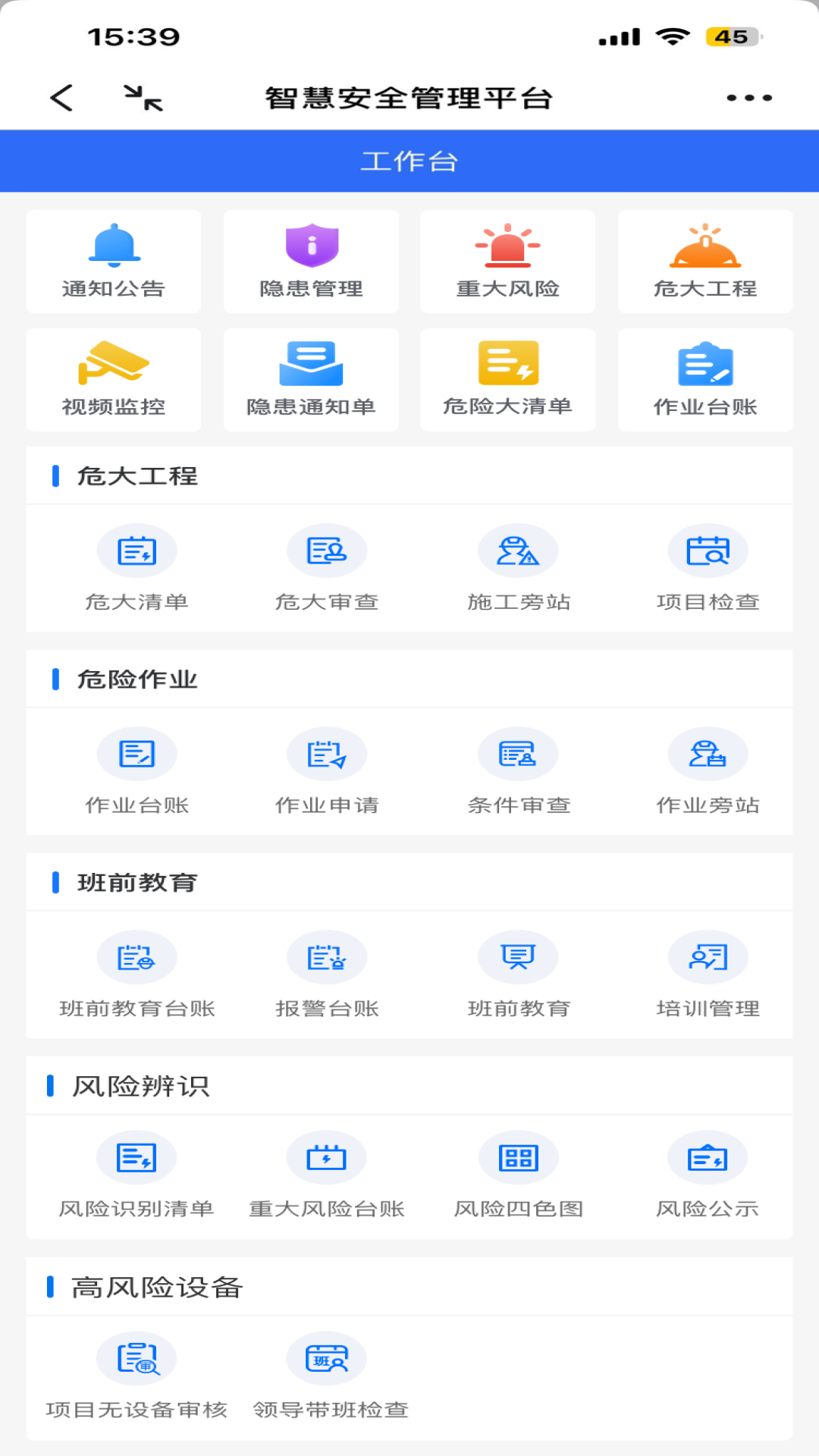 一款建筑工程领域的安全管理智能化软件,主要是协助在建项目安全管理人员管理施工现场人员、设备等内容,主要包括项目设置、项目管理、人员管理、危大工程、高风险设备、应急管理、智慧物联等模块内容,通过对现场人员、设备的管理,提高安全管理水平,统筹整个项目安全管理工作。