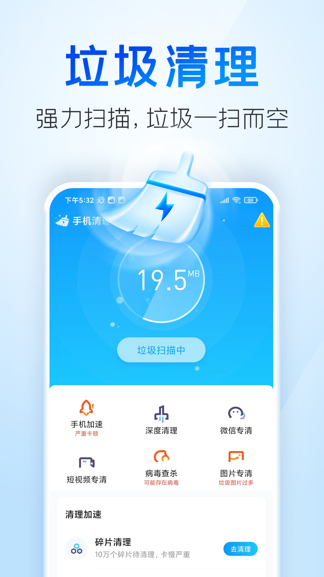 【强力垃圾清理】可进行深度扫描,能彻底地把垃圾清理干净。