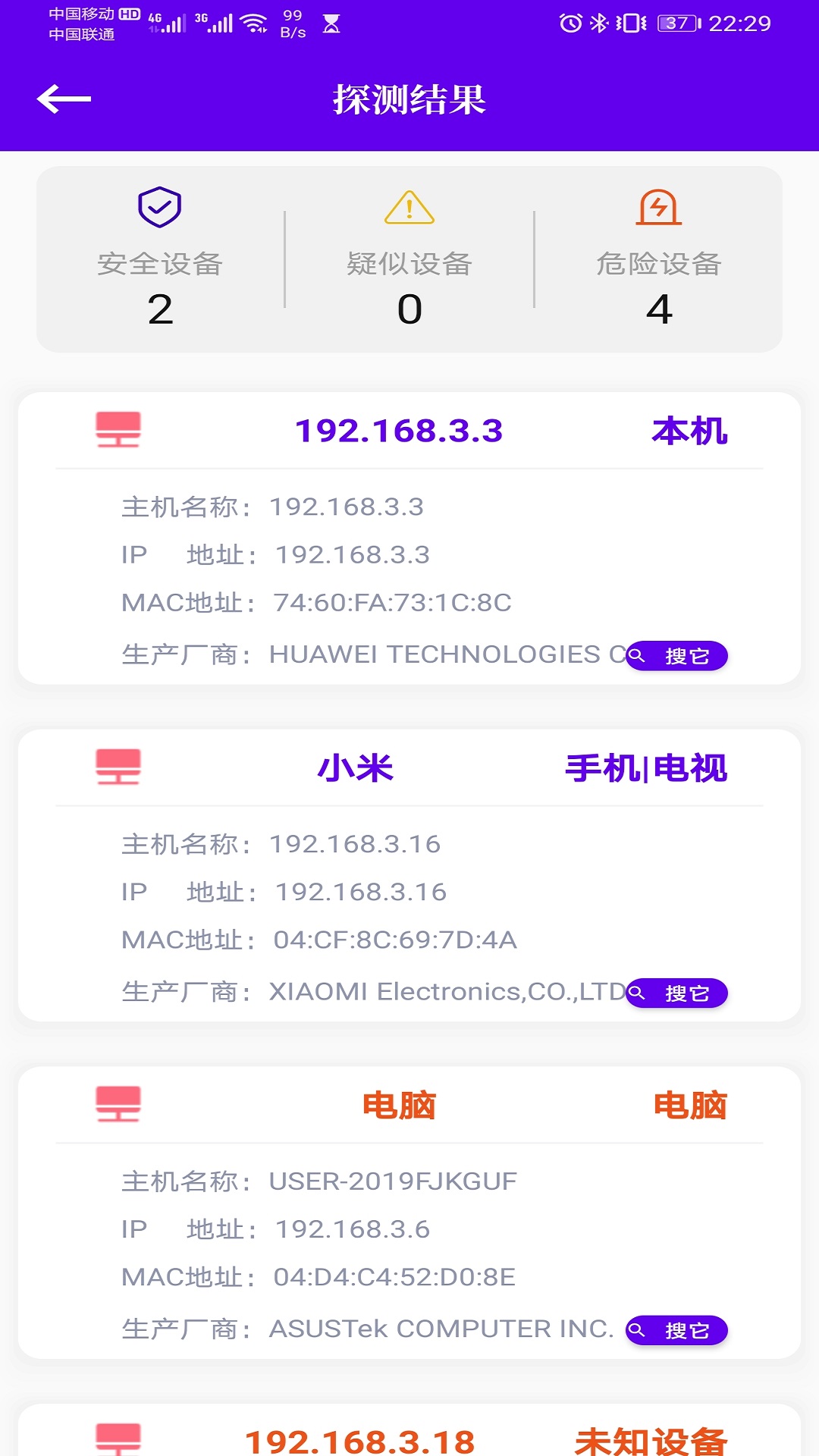【1. 网络定位】借助无线网络协议与Fing原理,对接入网络的针孔摄像头设备进行探测,从而快速锁定其位置,高效地进行甄别。